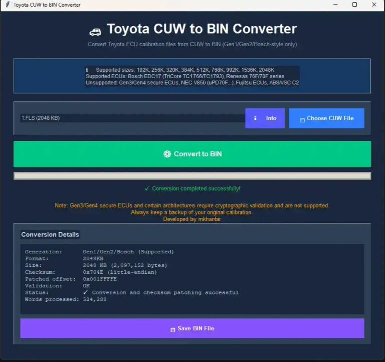 Toyota CUW to BIN Converter